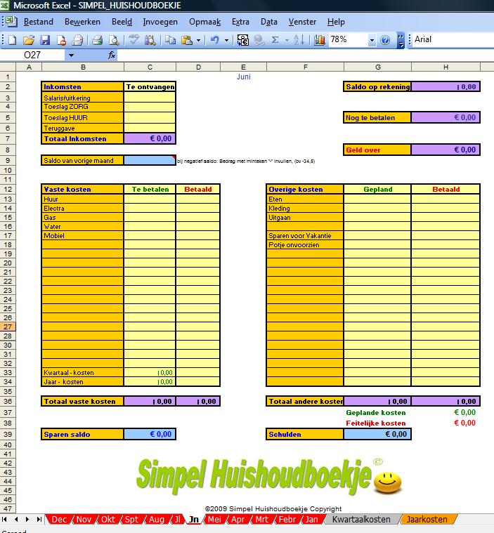Het Simpel Huishoudboekje© berekent voor u een bedrag wat u per maand overhoudt.